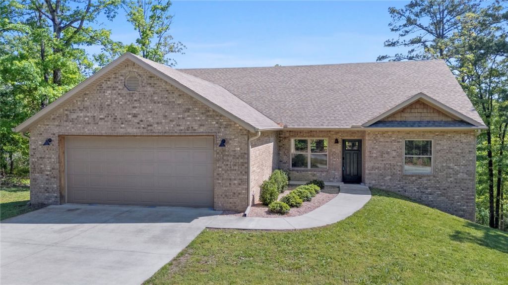 Set on nearly 2 wooded acres, this home offers something buyers rarely find...space to breathe, room to grow, and a peaceful setting without sacrificing convenience. The drive along scenic Highway 12 becomes part of the experience, helping the day melt away before you even arrive home.Inside, vaulted ceilings and an open layout create warmth, volume, and natural light throughout. The kitchen offers generous workspace, abundant storage, and seamless connection to the main living area, making it ideal for both daily living and gathering with friends. A large laundry room with sink, pantry space, oversized closets, and thoughtfully planned secondary rooms add comfort and function.The primary suite provides a quiet place to unwind. Built with lasting quality, features include 2x6 exterior walls, poured concrete foundation walls, extra-wide openings for accessibility, and an oversized garage. Peaceful, practical, and hard to duplicate.5 minutes by car to nearest boat ramp on Beaver Lake.